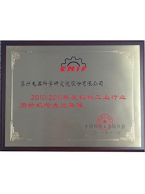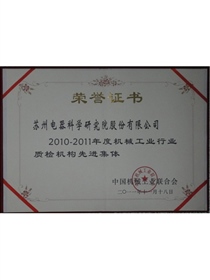 • 2010-2011機械行業優秀質檢機構