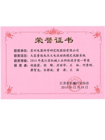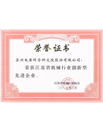 • 江蘇省機械行業創新型先進企業(獎狀)