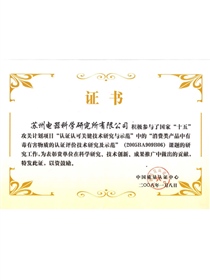 • “認證認可關鍵技術研究及示范-消費類產品中有毒有害物質的認證評價技術研究及示范”課題研究突出貢獻獎