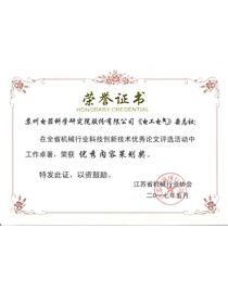 • 全省機械行業科技創新技術優秀論文評選-優秀內容策劃獎