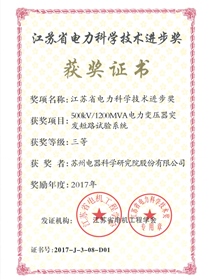 • 2012市科學技術進步三等獎(電力變壓器)