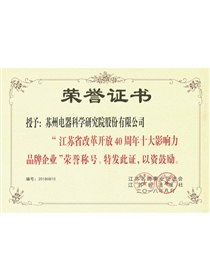 • 江蘇省改革開放40周年十大影響力品牌企業(獎狀)
