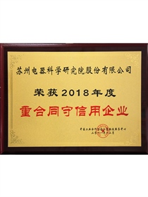 • 榮獲2018年度重合同守信用企業