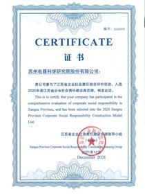 • 入選“2020年度江蘇省企業社會責任建設典范榜”