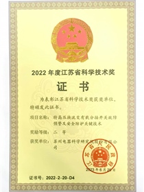 • 江蘇機械工業科技進步一等獎