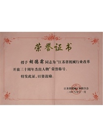 • 江蘇省優秀企業家(獎狀)