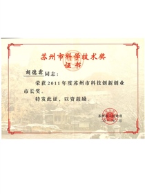 • 2011年蘇州市科技創新創業市長獎