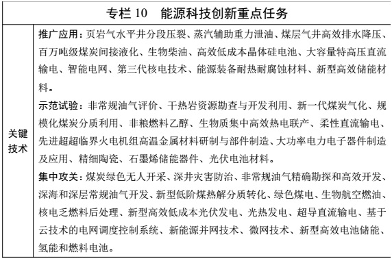 專欄 10 能源科技創(chuàng)新重點(diǎn)任務(wù)