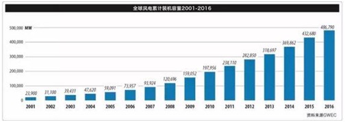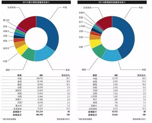 全球風(fēng)能理事會(huì)在印度新德里發(fā)布《全球風(fēng)電報(bào)告:年度市場(chǎng)發(fā)展》。《報(bào)告》顯示,2016年中國風(fēng)電累計(jì)、新增裝機(jī)容量均居全球第一。2016 年全球風(fēng)電新增裝機(jī)容量超過 54GW, 其中 9 個(gè)國家的裝機(jī)容量超過10GW,累計(jì)容量達(dá)到 486.8GW,累計(jì)裝機(jī)容量增長 12.6%。