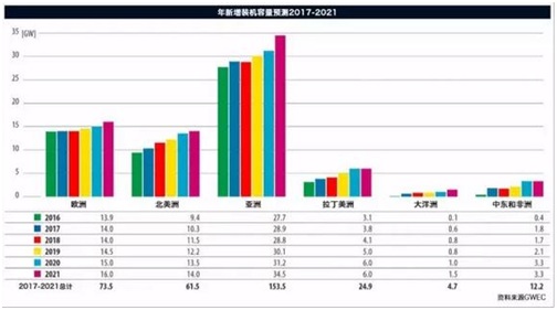 在南美洲, 盡管巴西的政治和經(jīng)濟(jì)處于困境, 但該區(qū)域的其他國家正在填補(bǔ)風(fēng)電市場(chǎng)的空白, 特別是烏拉圭和智利,以及這一區(qū)域中最令人關(guān)注的阿根廷。 非洲2017年也將經(jīng)歷強(qiáng)勁增長, 由肯尼亞、南非和摩洛哥引領(lǐng),非洲大陸上的未來發(fā)展圖景非常樂觀。 澳大利亞市場(chǎng)經(jīng)歷了一個(gè)短暫的沉寂后,也開始展現(xiàn)出恢復(fù)的跡象,特別是擁有一個(gè)堅(jiān)實(shí)的待建項(xiàng)目管道,將確保未來幾年風(fēng)電的增長。