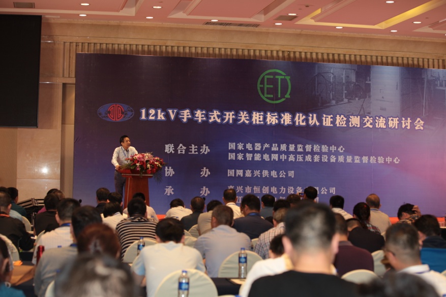 2018年5月5日,由國家電器產品質量監督檢驗中心和國家智能電網中高壓成套設備質量監督檢驗中心聯合主辦、國網嘉興供電公司協辦、嘉興市恒創電力設備有限公司和浙江聚弘凱電氣有限公司承辦的12kV手車式開關柜標準化認證檢測交流研討會在浙江省嘉興富悅大酒店順利召開。