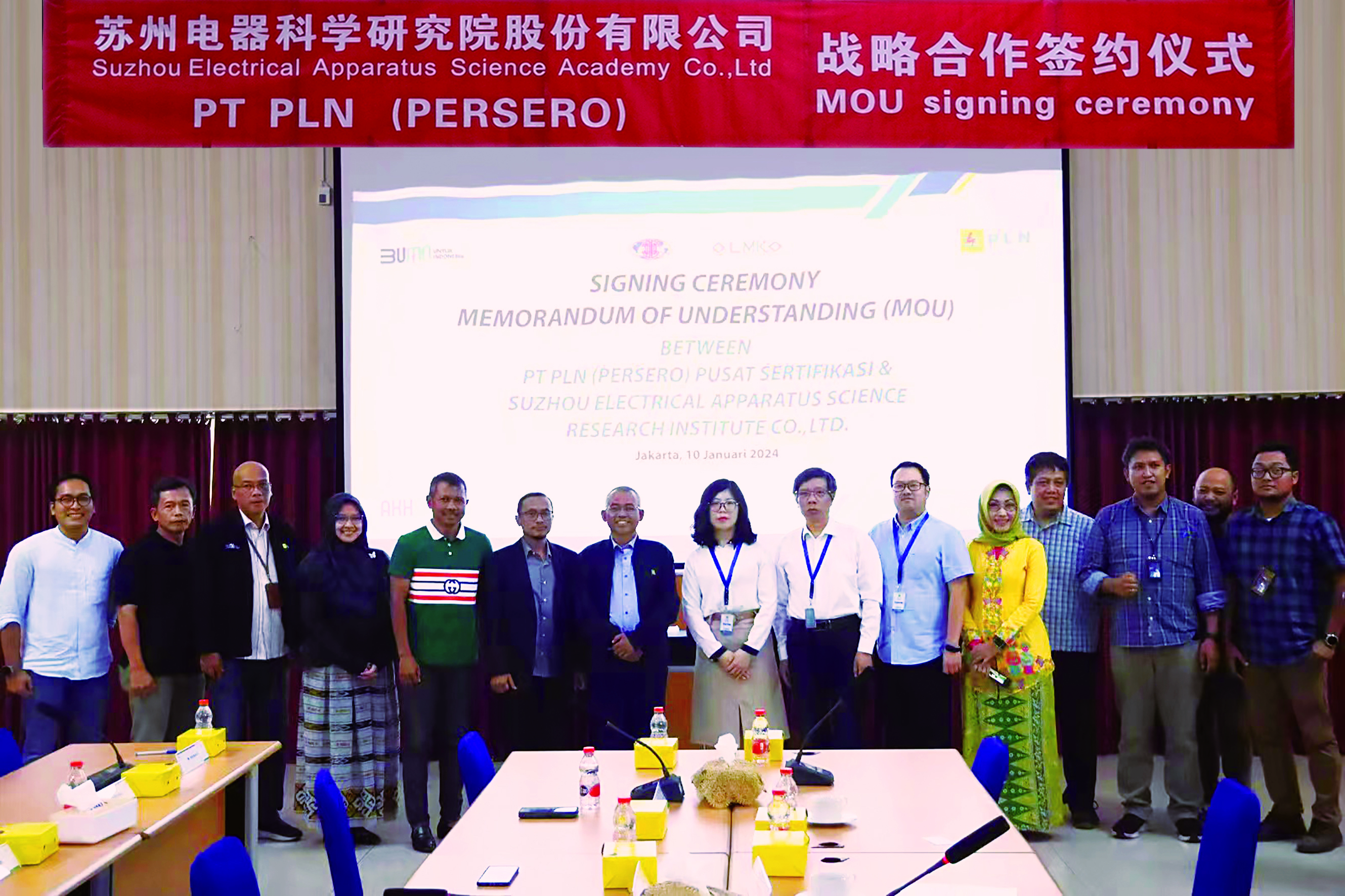 2024年1月10日,國內(nèi)輸變電能源裝備檢測領(lǐng)域領(lǐng)軍企業(yè)之一蘇州電器科學研究院股份有限公司(下稱蘇州電科院)與印尼國家電力公司PT PLN(PERSERO)在印尼雅加達PT PLN(PERSERO)總部舉行簽約儀式,簽署戰(zhàn)略合作備忘錄協(xié)議。