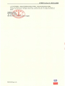 • China Classification Society product testing institute certificate(front)