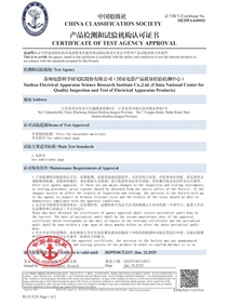 • CHINA CLASSIFICATION SOCIETY CERTIFICATE OF TEST AGENCY APPROVAL-Electrical products (front)